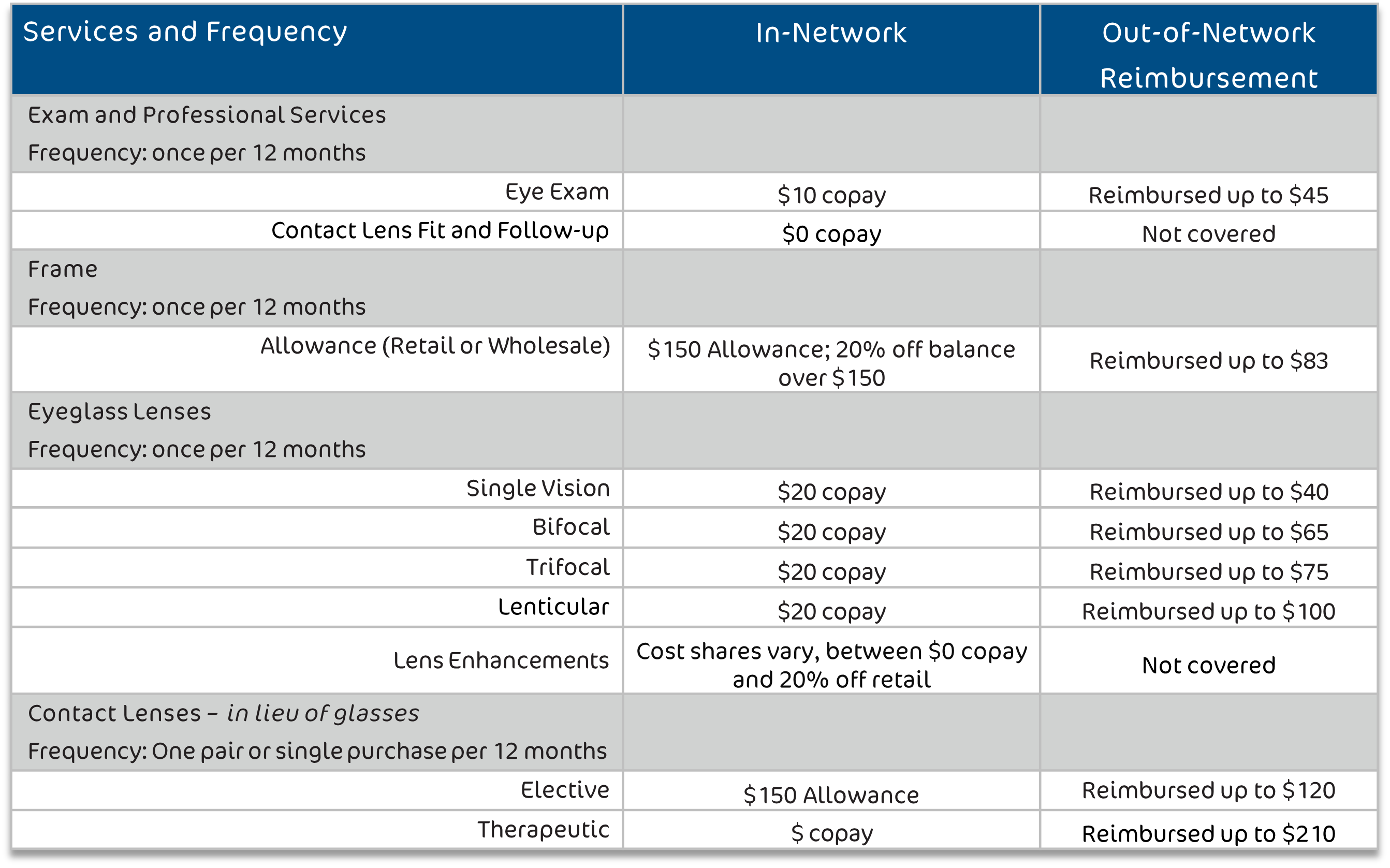 - 20% off any item not covered by the plan, including non-prescription sunglasses